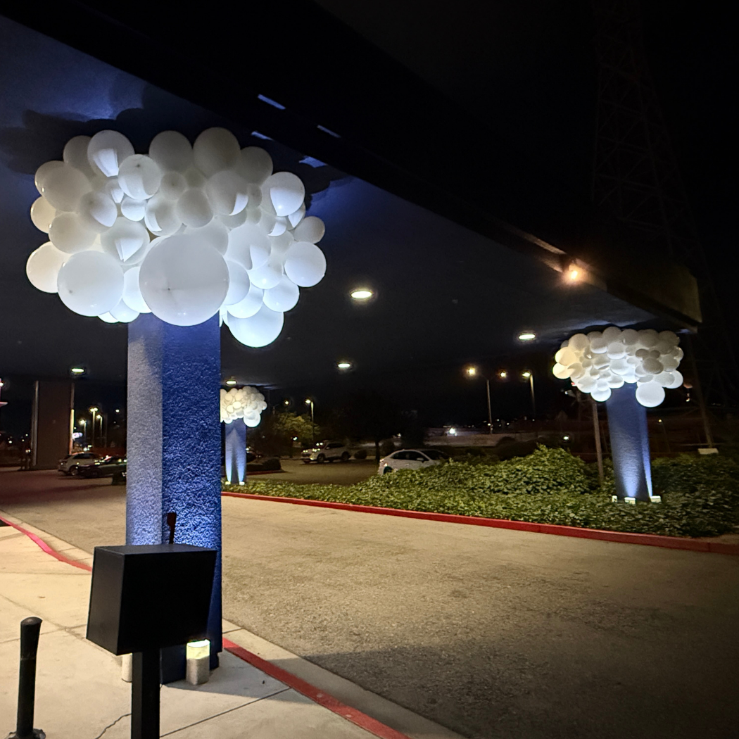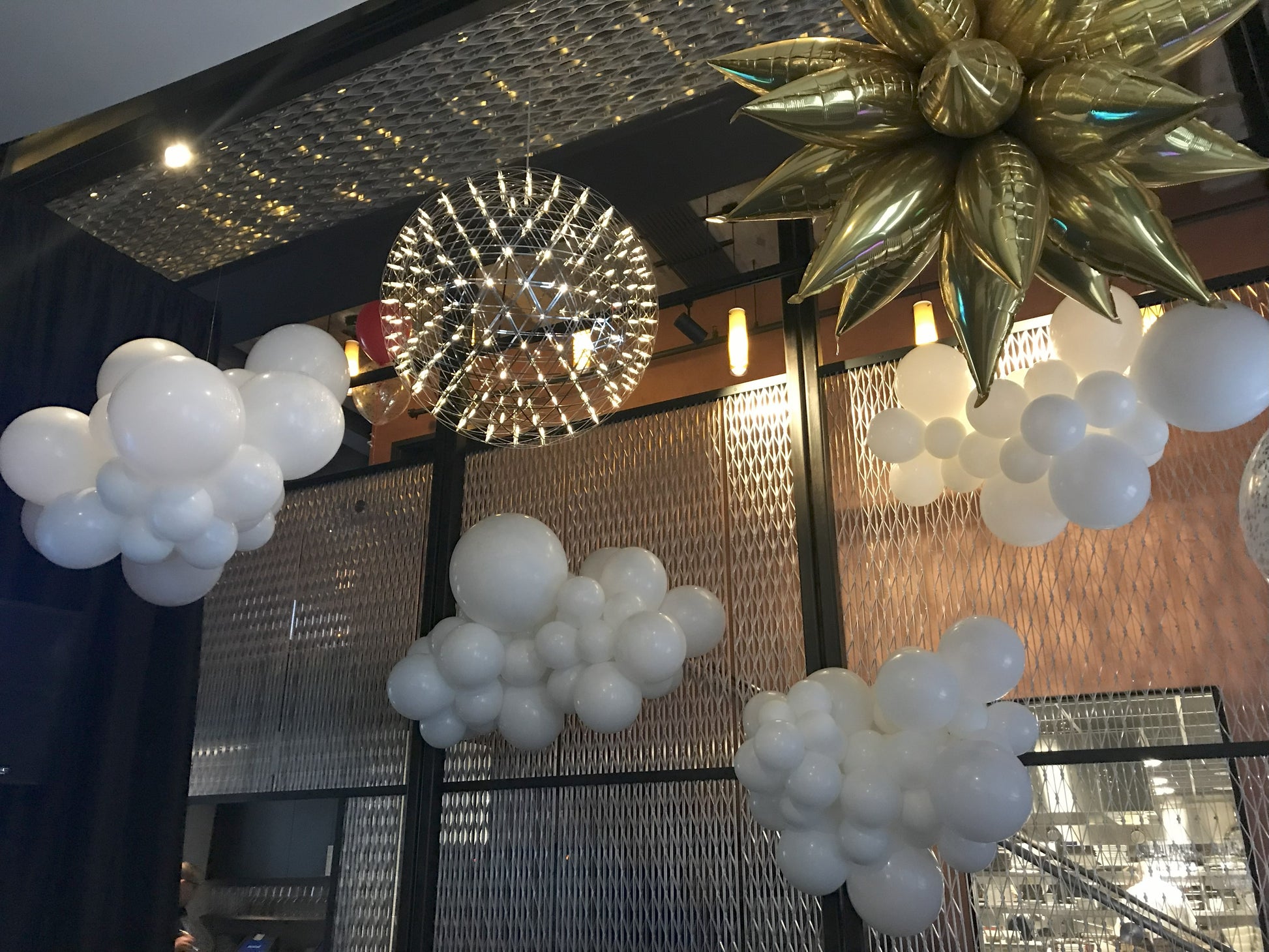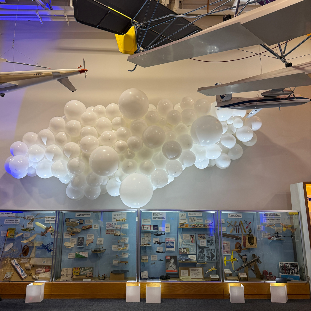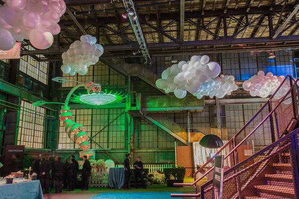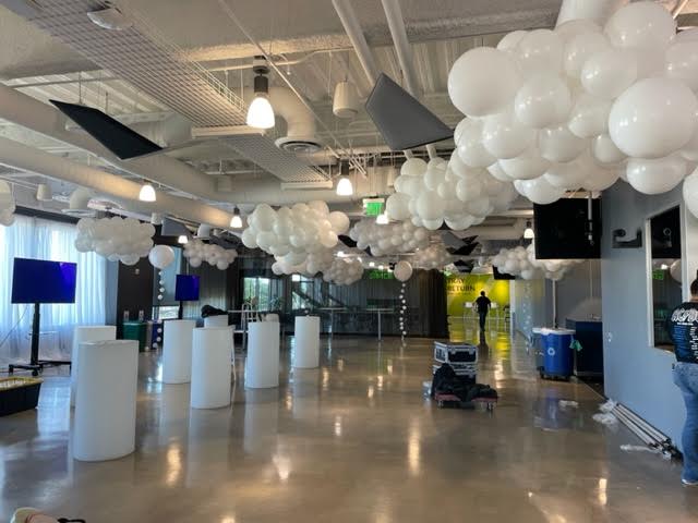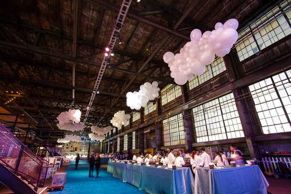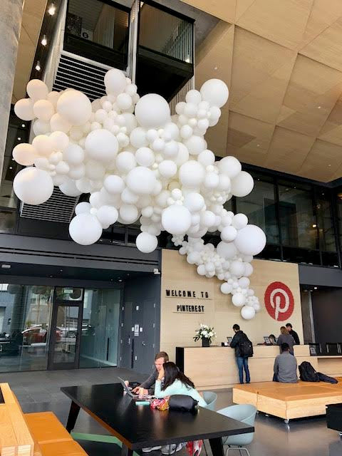 Balloon clouds are commonly white but can be customized in any color you desire. They provide a delightful method to infuse a sense of wonder into indoor spaces. Each cloud is uniquely crafted, ensuring no two are the same and making them true artistic pieces.