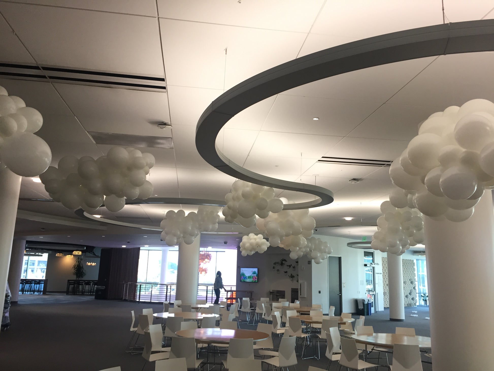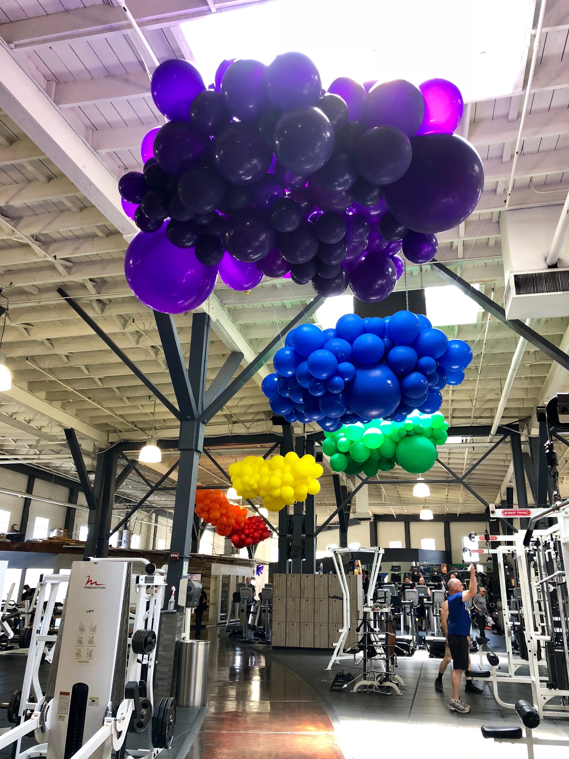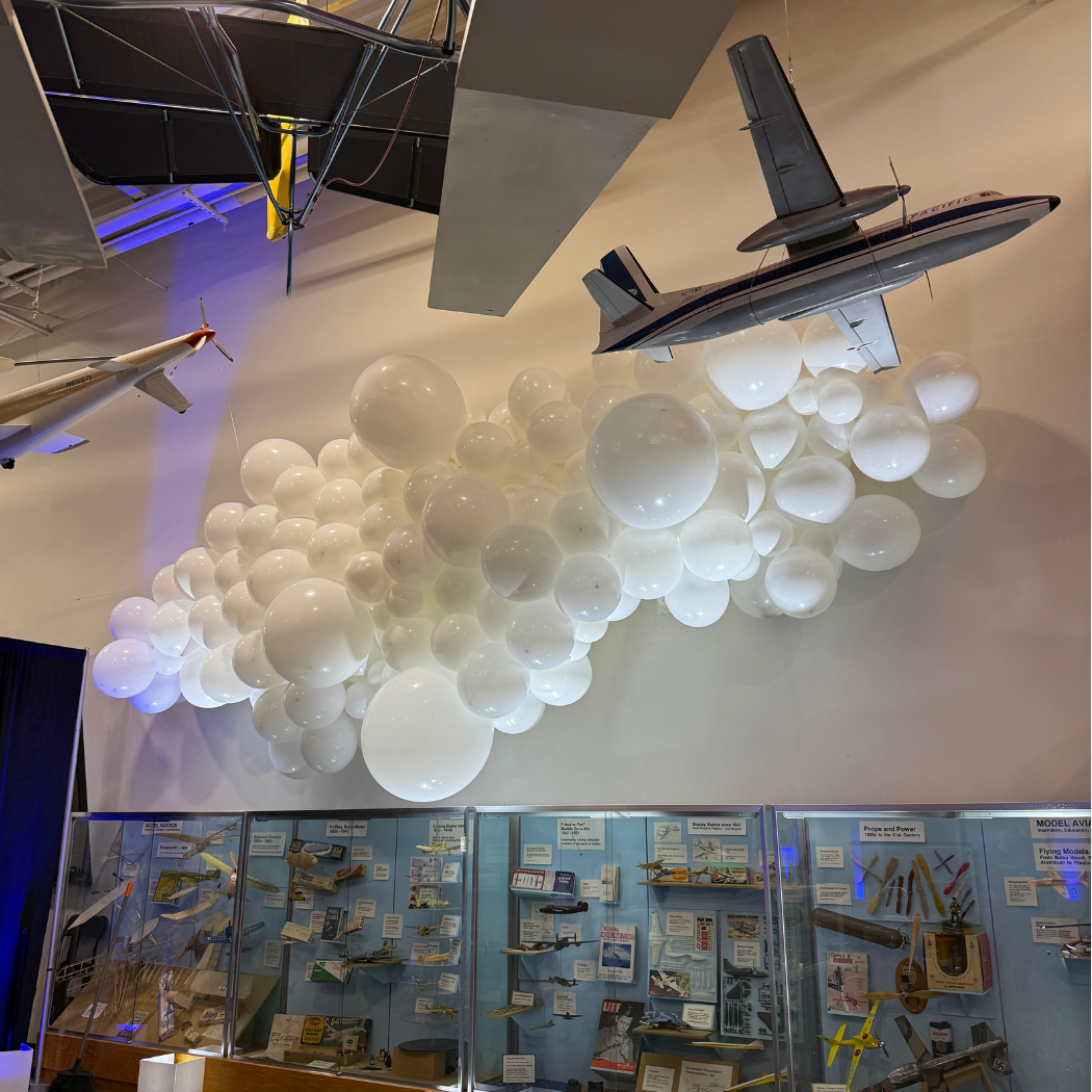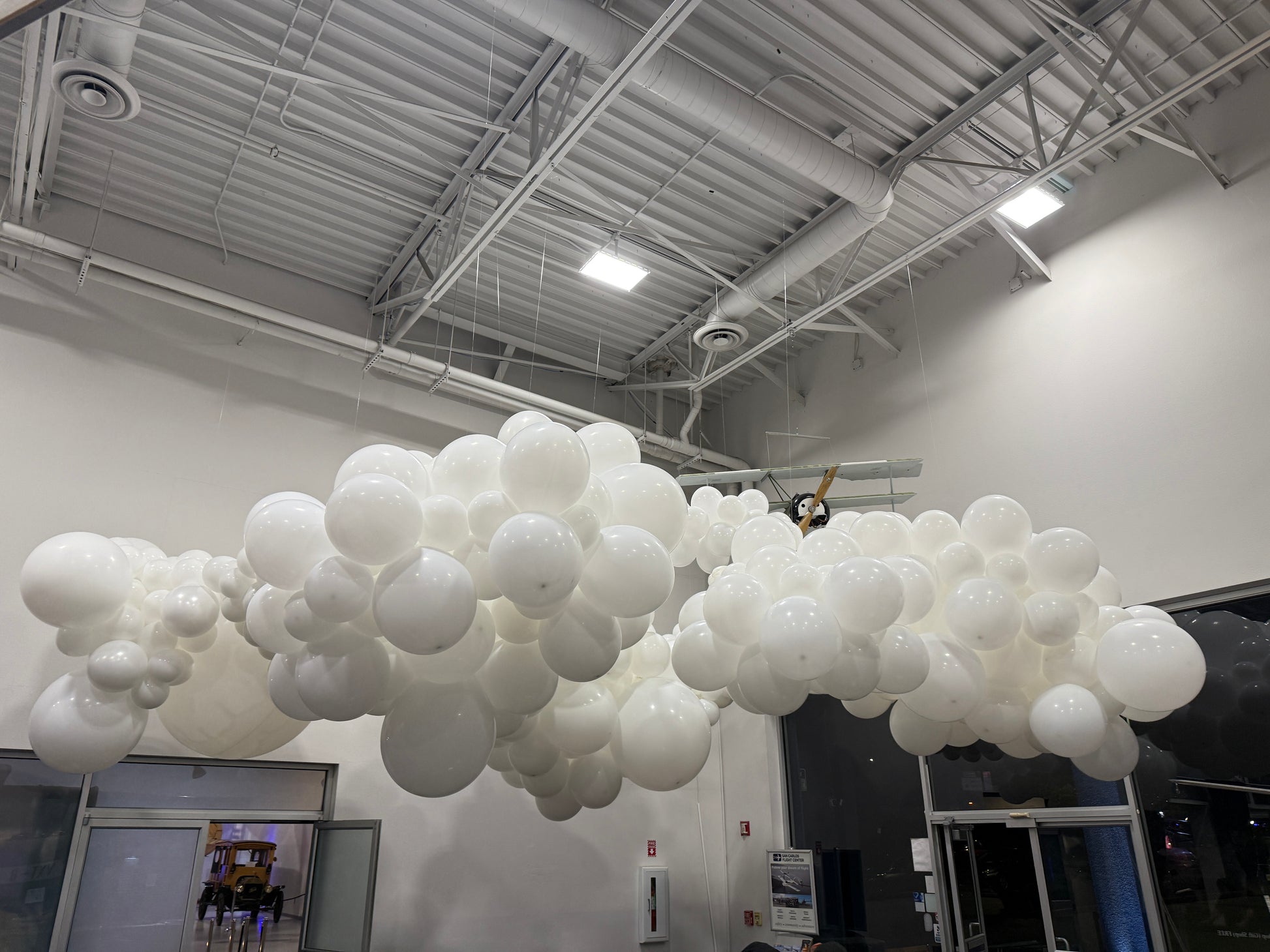 Balloon clouds are commonly white but can be customized in any color you desire. They provide a delightful method to infuse a sense of wonder into indoor spaces. Each cloud is uniquely crafted, ensuring no two are the same and making them true artistic pieces.